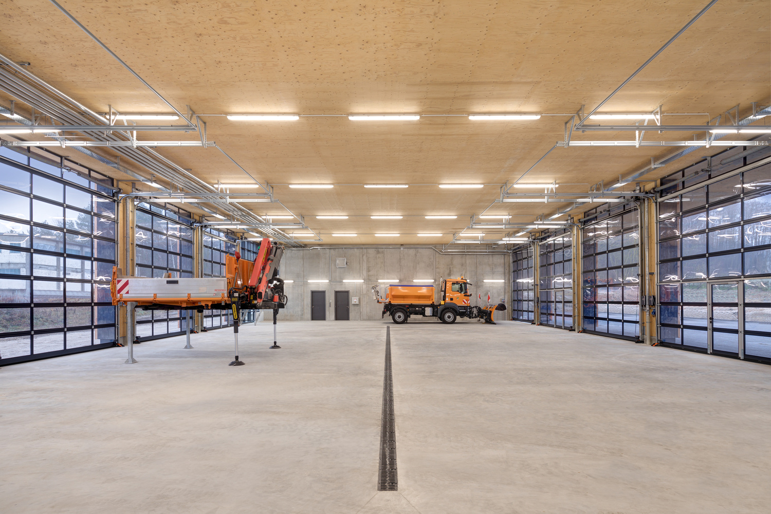 Neubau eines Bauhofes mit Verwaltungstrakt, Werkstätten, Lagerräumen, Fahrzeughalle, Waschhalle und Salzlager.