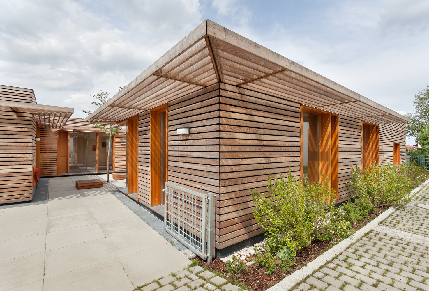 Der Entwurfsgedanke bestand darin, einen Garten-Pavillon mit grünem Spielzimmer zwischen den bestehenden Obstbäumen für die Pollenfelder Kinder zu kreieren. Dazu passend die Idee der Holzbauweise.