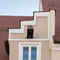 In den Erdgeschoßen sind Ladenflächen platziert, in den oberen Etagen sind Wohnungen untergebracht.