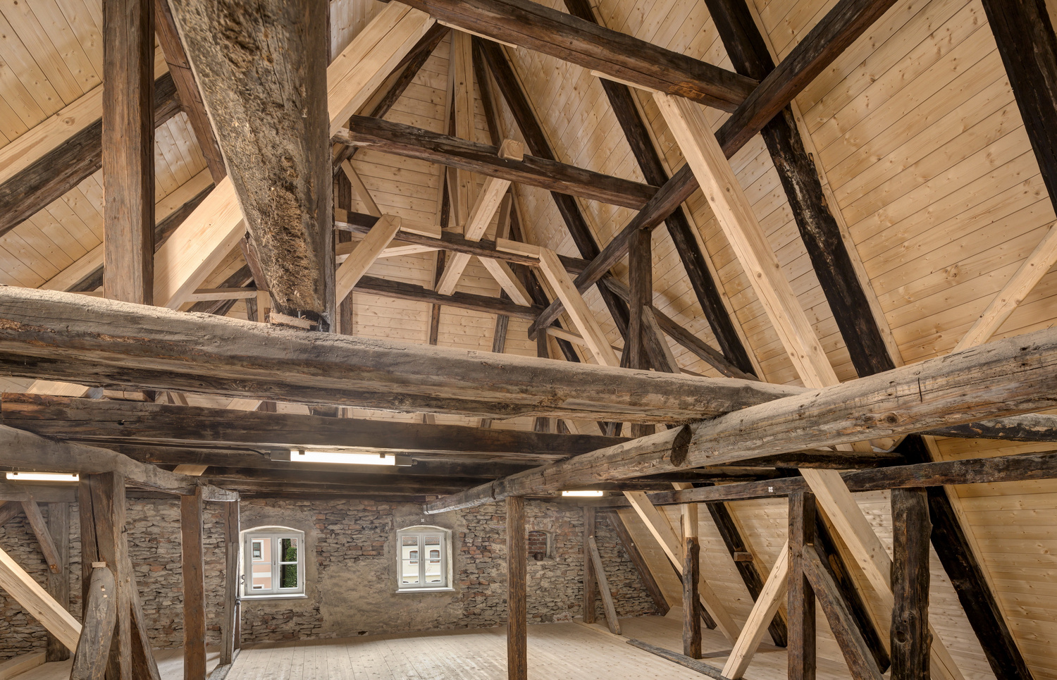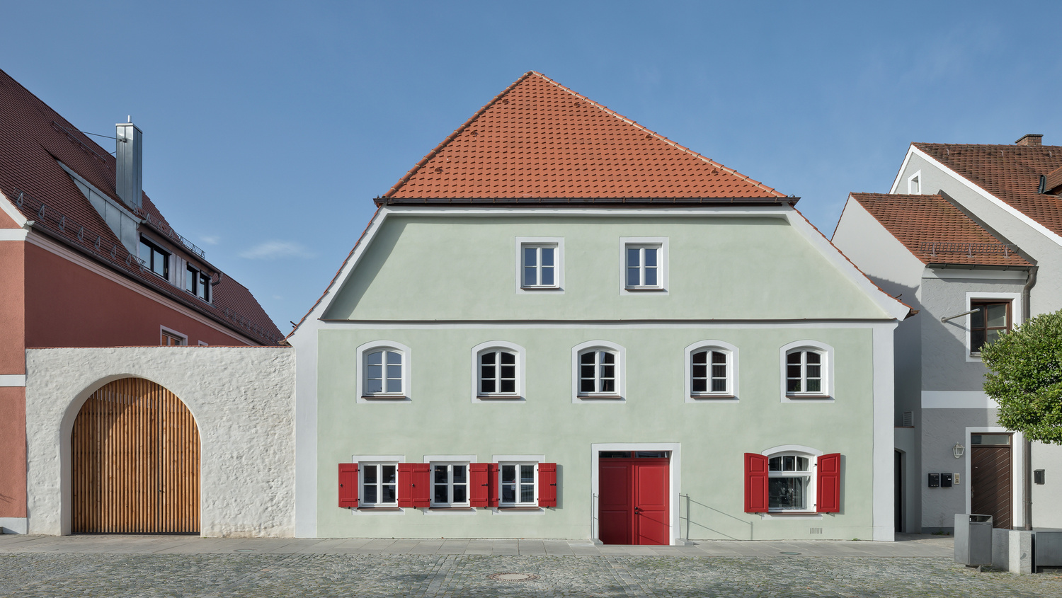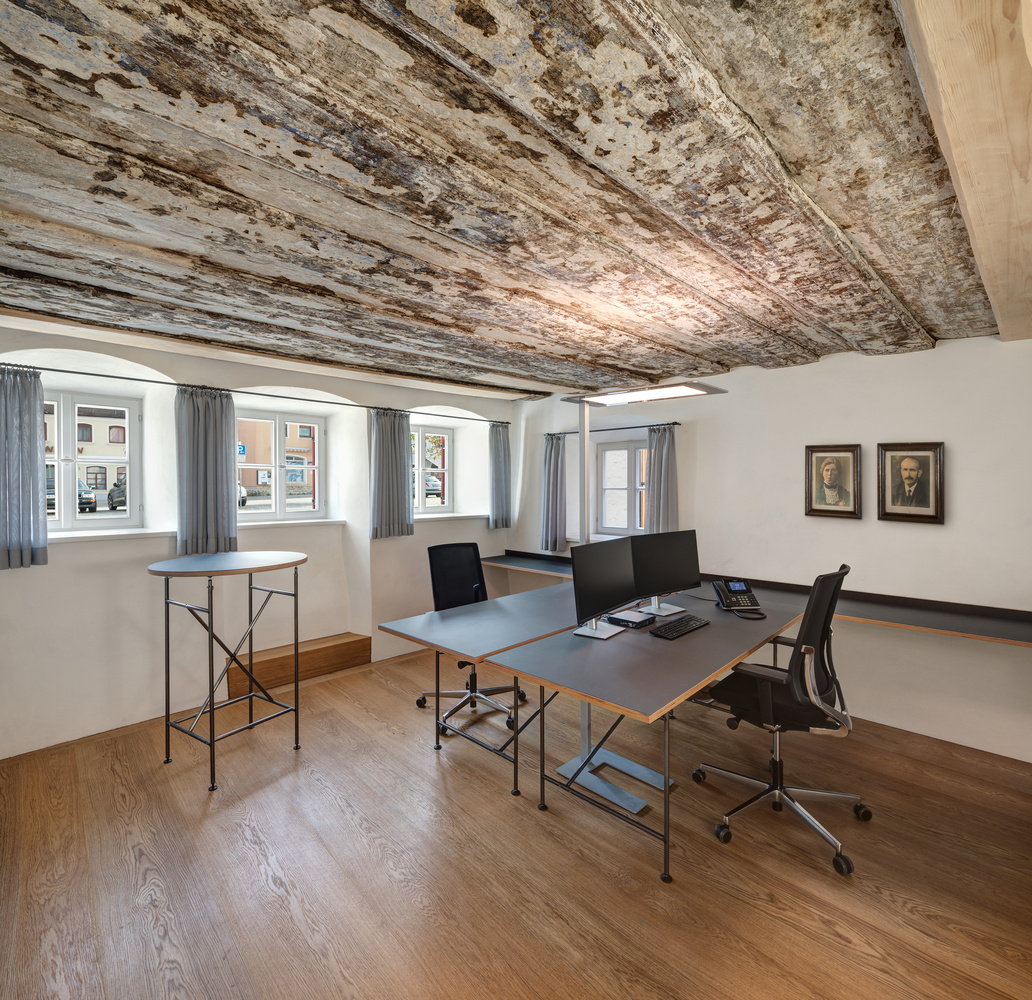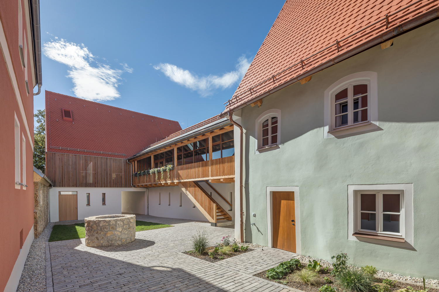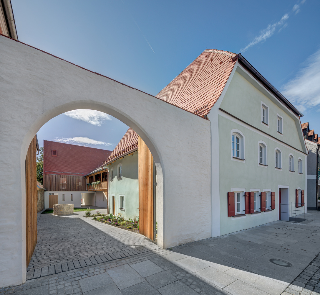 Die Instandsetzung des Baudenkmales am Marktplatz von Freystadt, erbaut 1370 wurde mit einem neuen Verbindungsbau und einem neuen rückwärtigen Gebäude ergänzt.