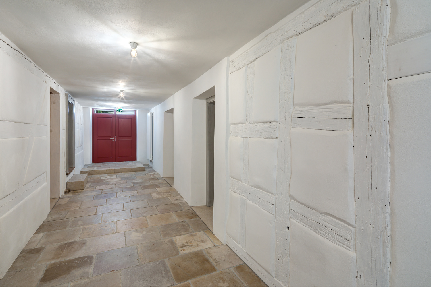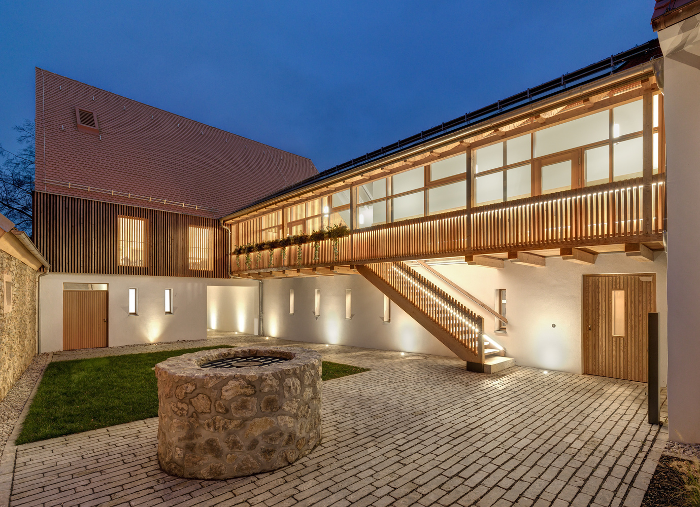 Der Verbindungsbaukörper zwischen Denkmal und Neubau dient im Obergeschoß als Foyer und im Erdgeschoß als Registratur