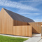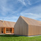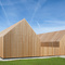 Die reduzierte Außenraumgestaltung fügt das Gebäude in die bestehende Wiese.