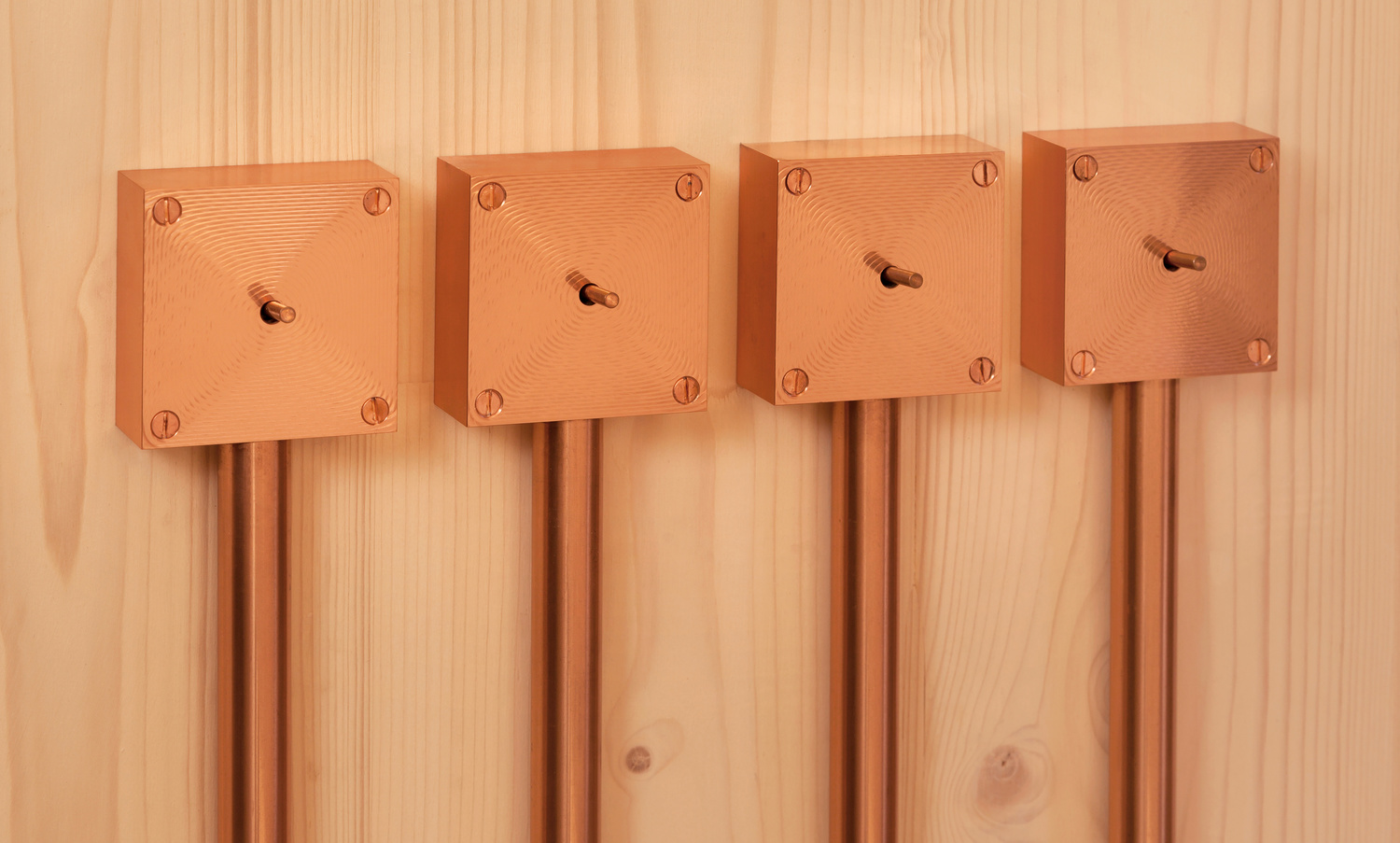 Die Schalter und Steckdosen sind aus Kupferblöcken ausgefräst.
