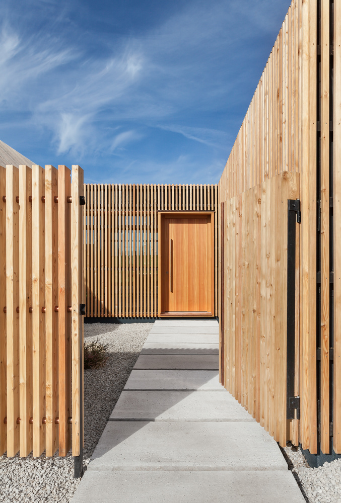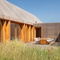 Die mit der Zeit vergrauenden Lärchenleisten passen sich in die Landschaft ein und geben trotzdem ein prägnantes, selbstbewusstes Erscheinungsbild. Die massiven, geölten Lärchenholzfenster bilden einen erfrischenden Kontrast zur später grauen Fassade.