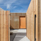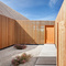 Ein flacher Zwischenbaukörper verbindet die beiden Häuser und stellt den großzügigen Eingangsbereich dar. Die Konstellation der Gebäude bildet zwei Höfe: